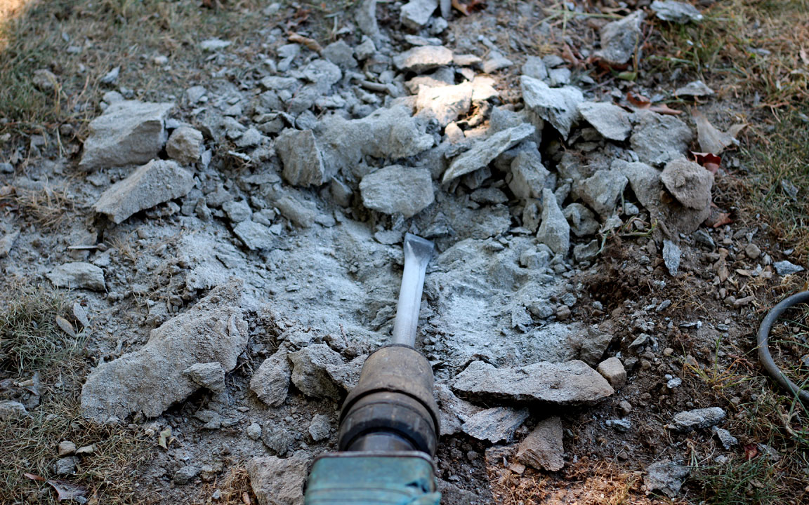 I took the Bosch Hammer, and flipped the switch, “Brrrrrrruup, Brrrrrruup, Brrrrrrup!” Chips of granite went flying and a big grin stretched across my face. Holy Crap, I had my own jack hammer! Of course, this one wasn’t new. In fact, I think I’ll call him Oscar because he used to live in a garbage can, isn’t pretty, and can have a nasty temperament – at least toward granite.