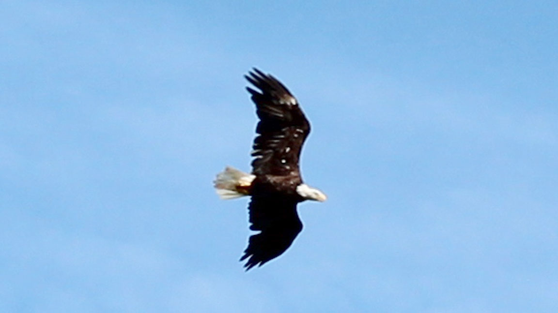 On our way back, we spotted three bald eagles flying in low circles overhead. This was only the second time I saw a bald eagle in the wild (the first was in Colorado.) And I managed to get a pretty sweet picture.
